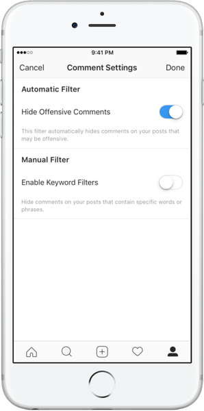 Reducir los comentarios tóxicos ahora es más fácil con el filtro de comentarios que bloquea automáticamente ciertos comentarios ofensivos en sus publicaciones publicadas, así como en video en vivo.